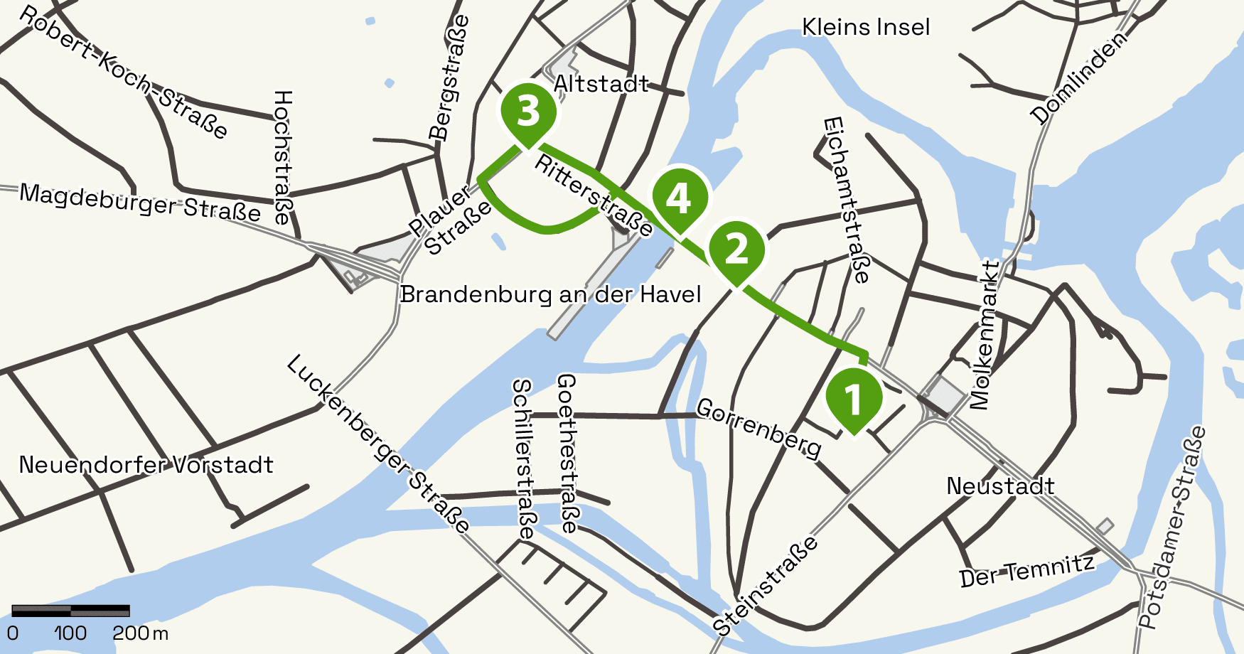 Ausgangspunkt des Football History Walks war an dem regnerischen Abend die St. Katharinenkirche (Katharinenkirchplatz 13, 14776 Brandenburg) im Stadtzentrum. Über zwei weitere Stopps erreichte die Gruppe mit der Jahrtausendbrücke ihre letzte Station.